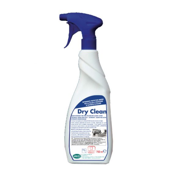 DRY CLEAN è ideale per una rapida pulizia e protezione di banchi distribuzione cibo, lavastoviglie, lavelli, ascensori, celle frigorifere etc. in acciaio. Rende le superfici pulite e lucide lasciando un film protettivo.