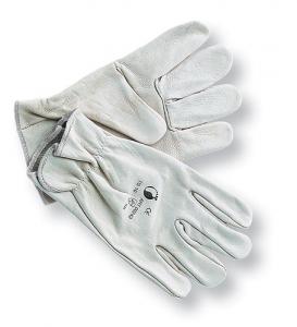 DESCRIZIONE: Guanto forma americana, pollice aperto, elastico sul dorso, modello bordato. MATERIALI: Pieno fiore bovino superiore.Tutta pelle bovina. Guanti rinforzati di protezione meccanica di uso generale