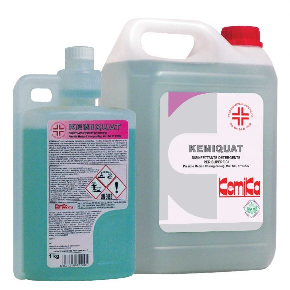 KEMIQUAT è un detergente disinfettante ambientale. Con KEMIQUAT si può detergere e disinfettare con un’unica