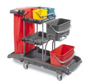 IdeaTop 11F Carrello multiuso IdeaTop 11F completo di: base più prolunga in polipropilene copolimero, 1 spalla diritta, 1 spalla diritta con maniglia, 2 secchi da 6 lt, 2 secchi rettangolari da 22 lt, 1 portasecchio 22 lt, 2 vassoi, reggisacco completo di 2 portamanico e 4 agganci, 5 ruote Ø 100 mm.