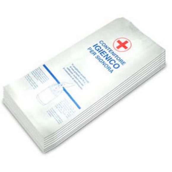 Sacchetti igienici in carta per assorbenti femminili. Il prodotto è venduto in confezione multiple per cartone. Ciascun cartone contiene 10 confezioni da 200 sacchetti cad., per un totale di 2.000 sacchetti per cartone